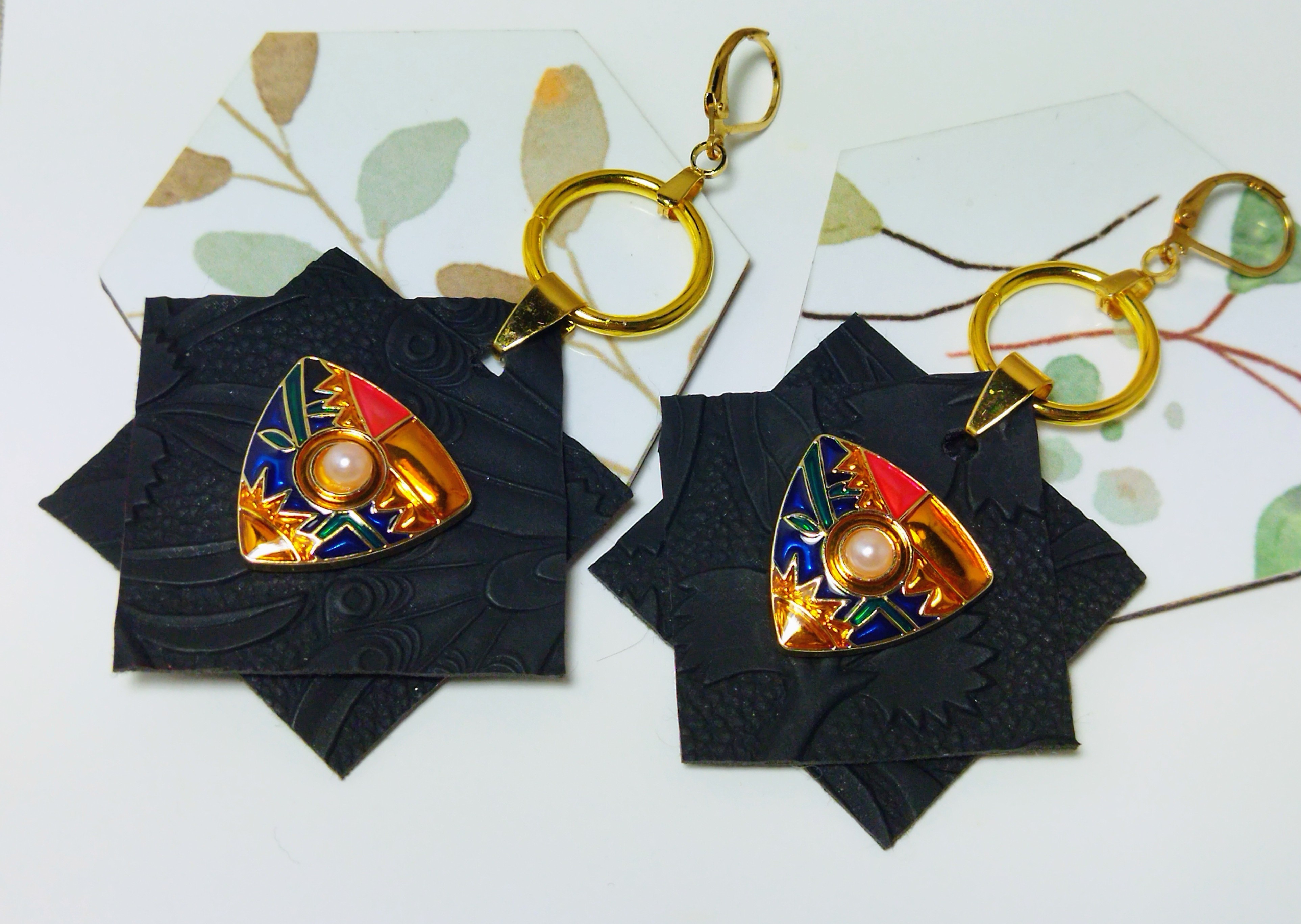 Boucles d'oreilles boutons triangulaires multicolores, petite perte nacrée