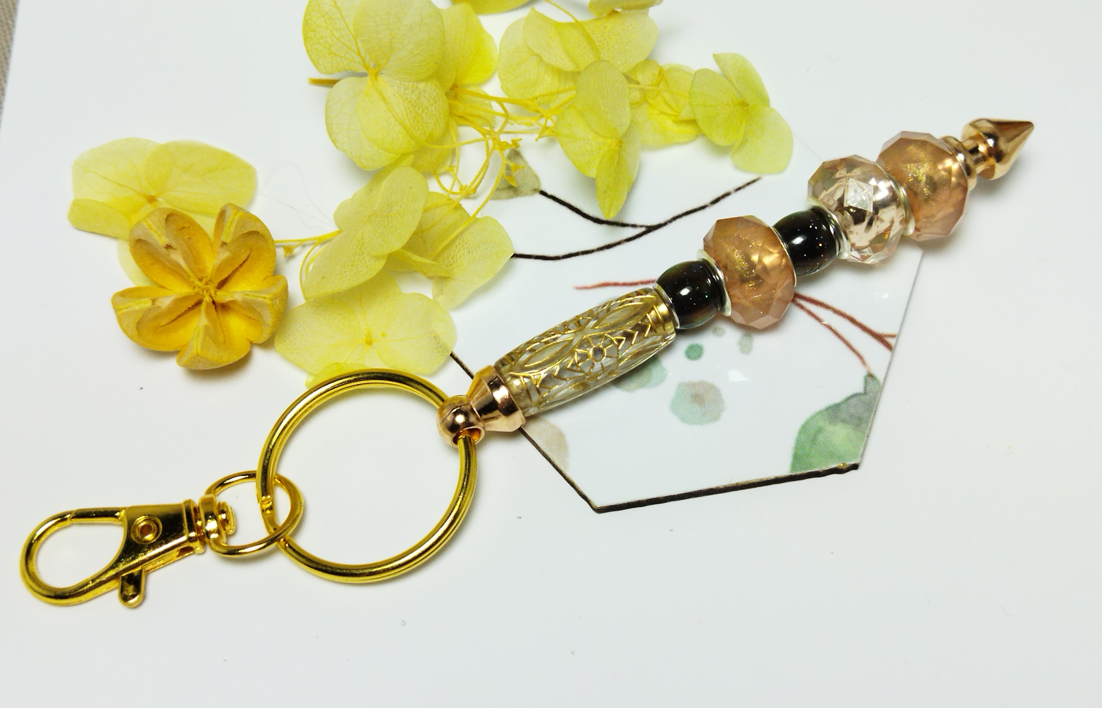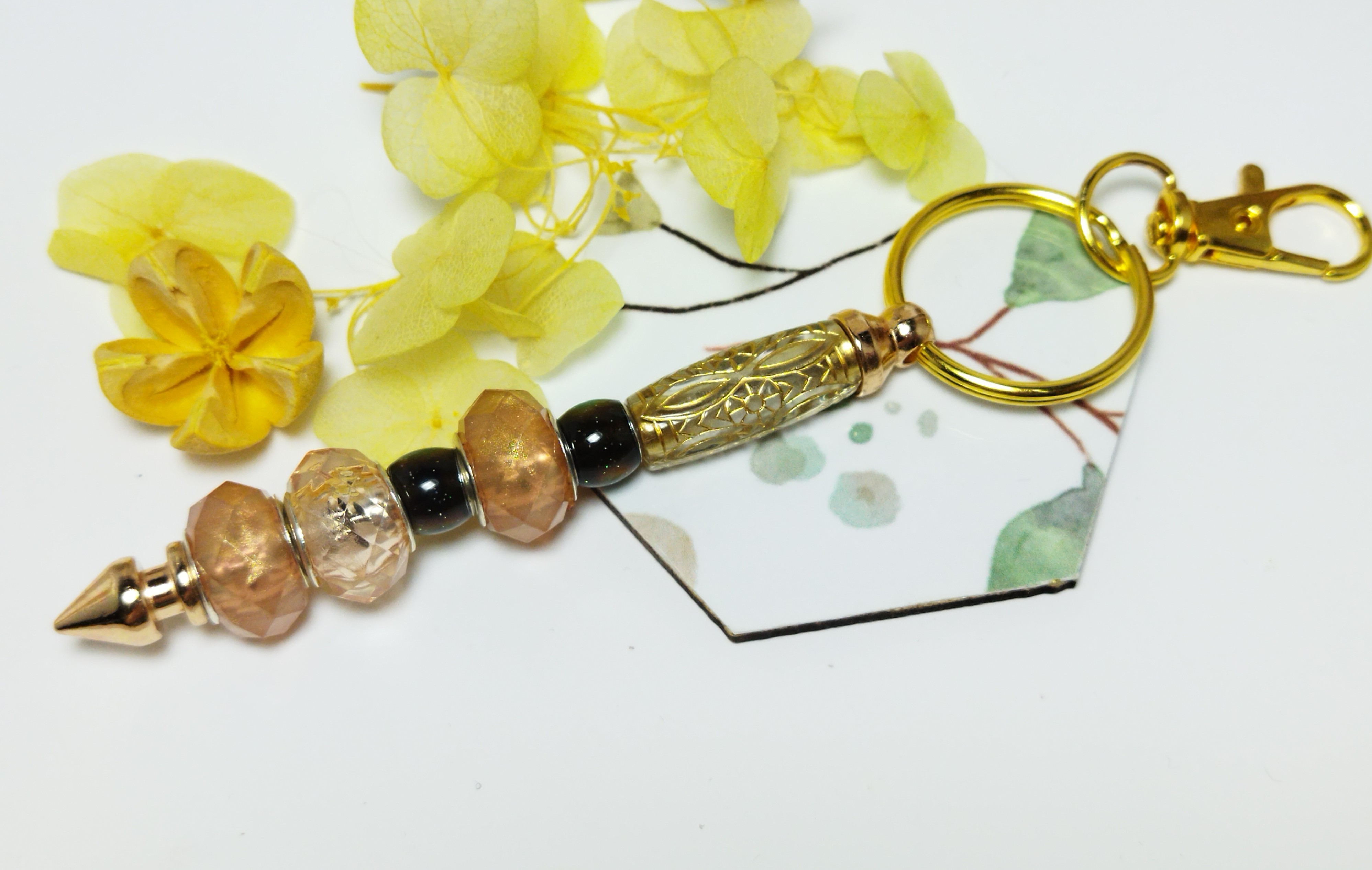 Allez vous résister à ce joli bijou de sac et porte clés, orné de perles en verre et synthétique doré, et d'accessoires d'ornement en acier inoxydable or antique.