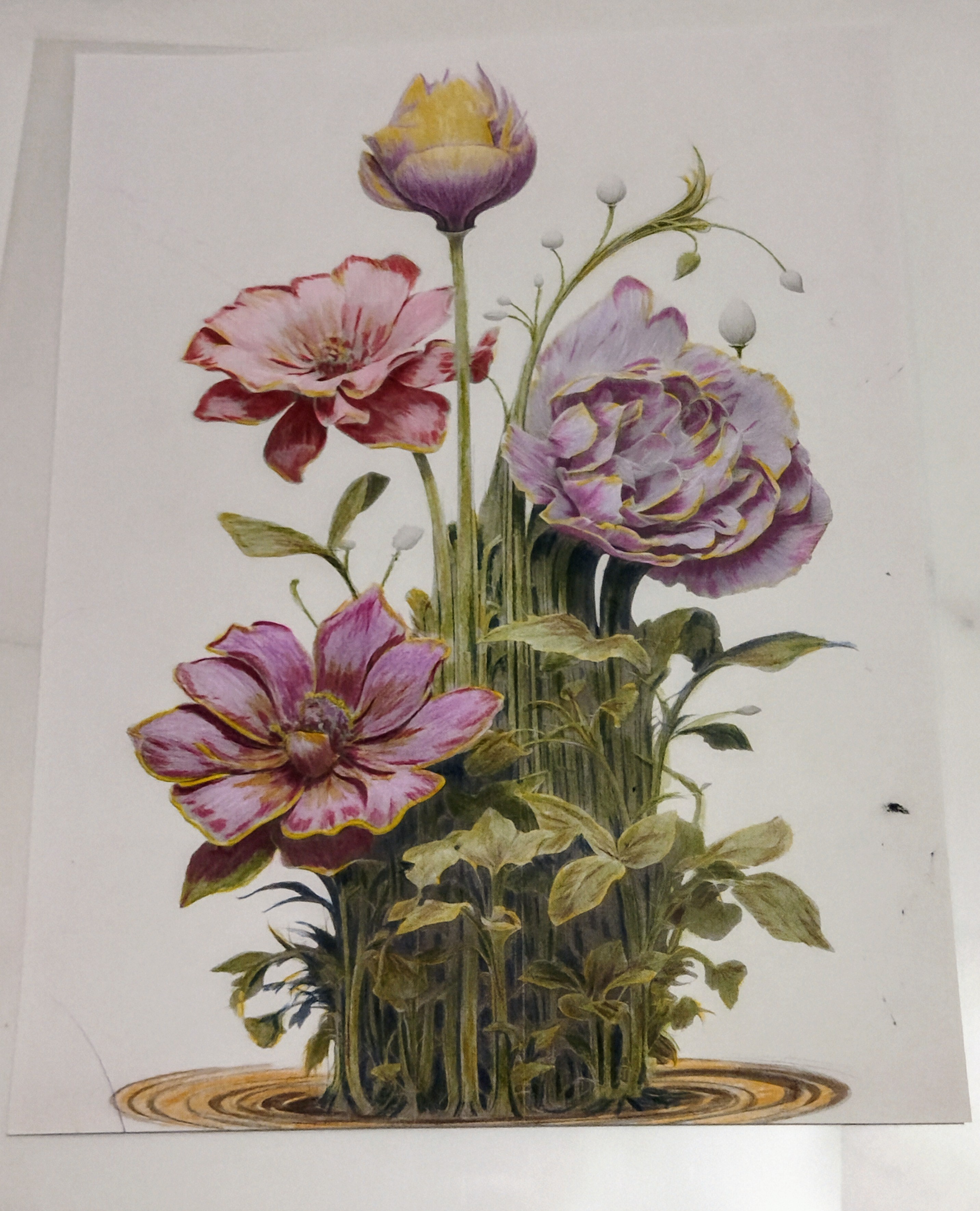 Élévation Florale – Illustration originale aux crayons de couleur professionnels